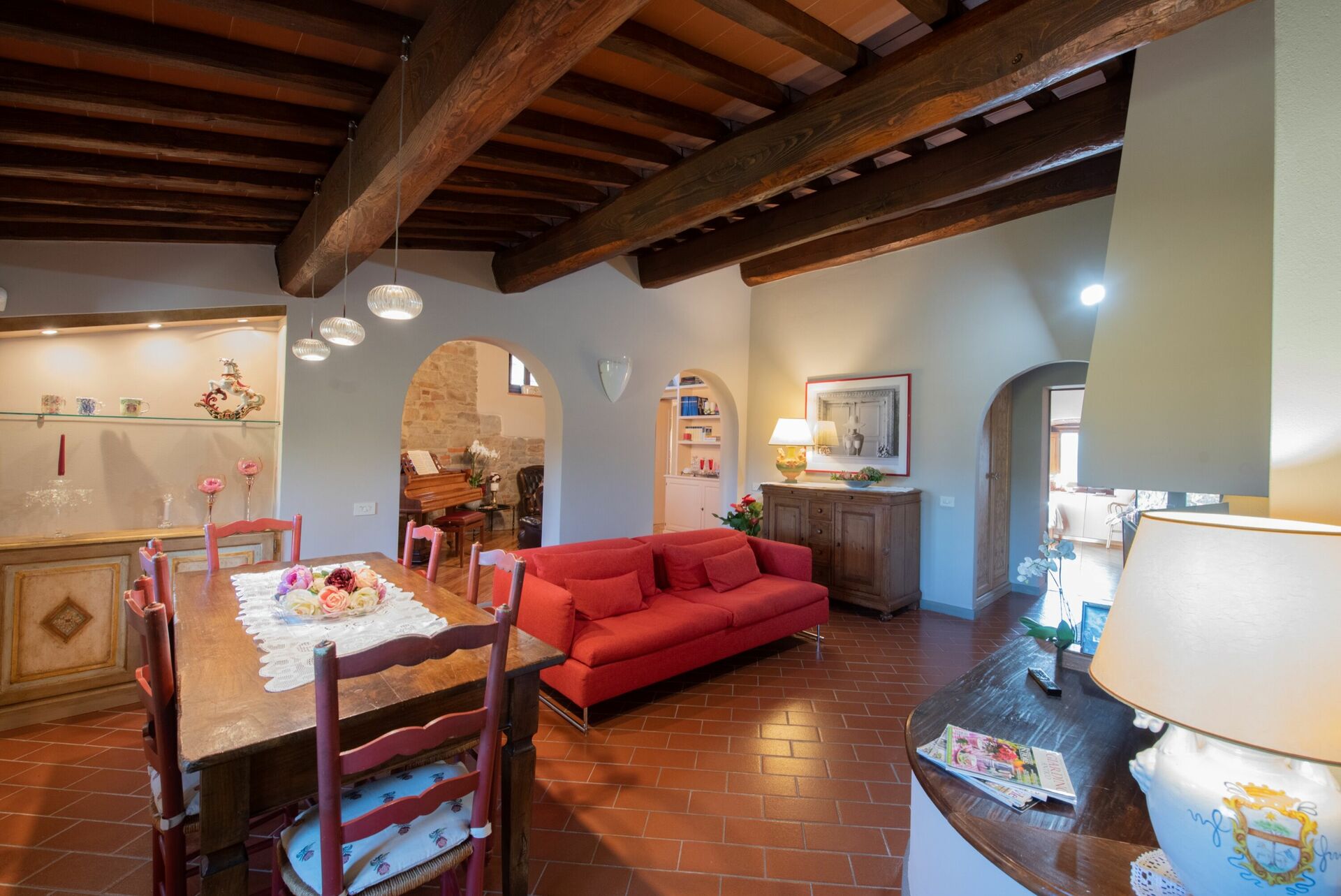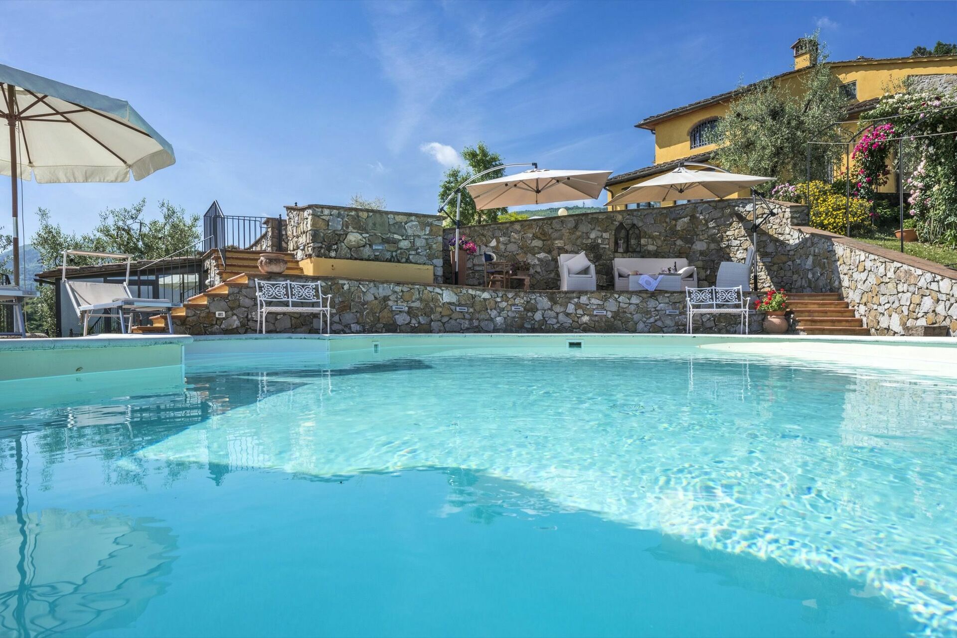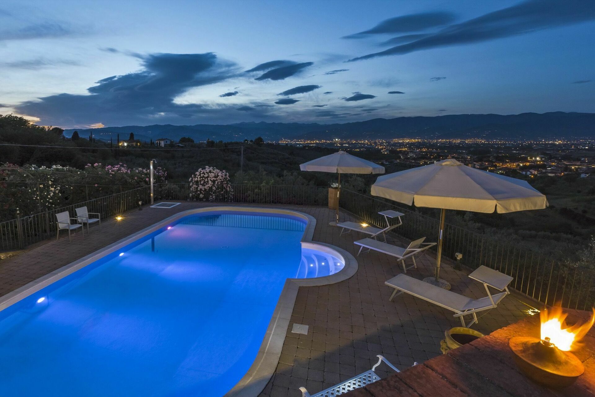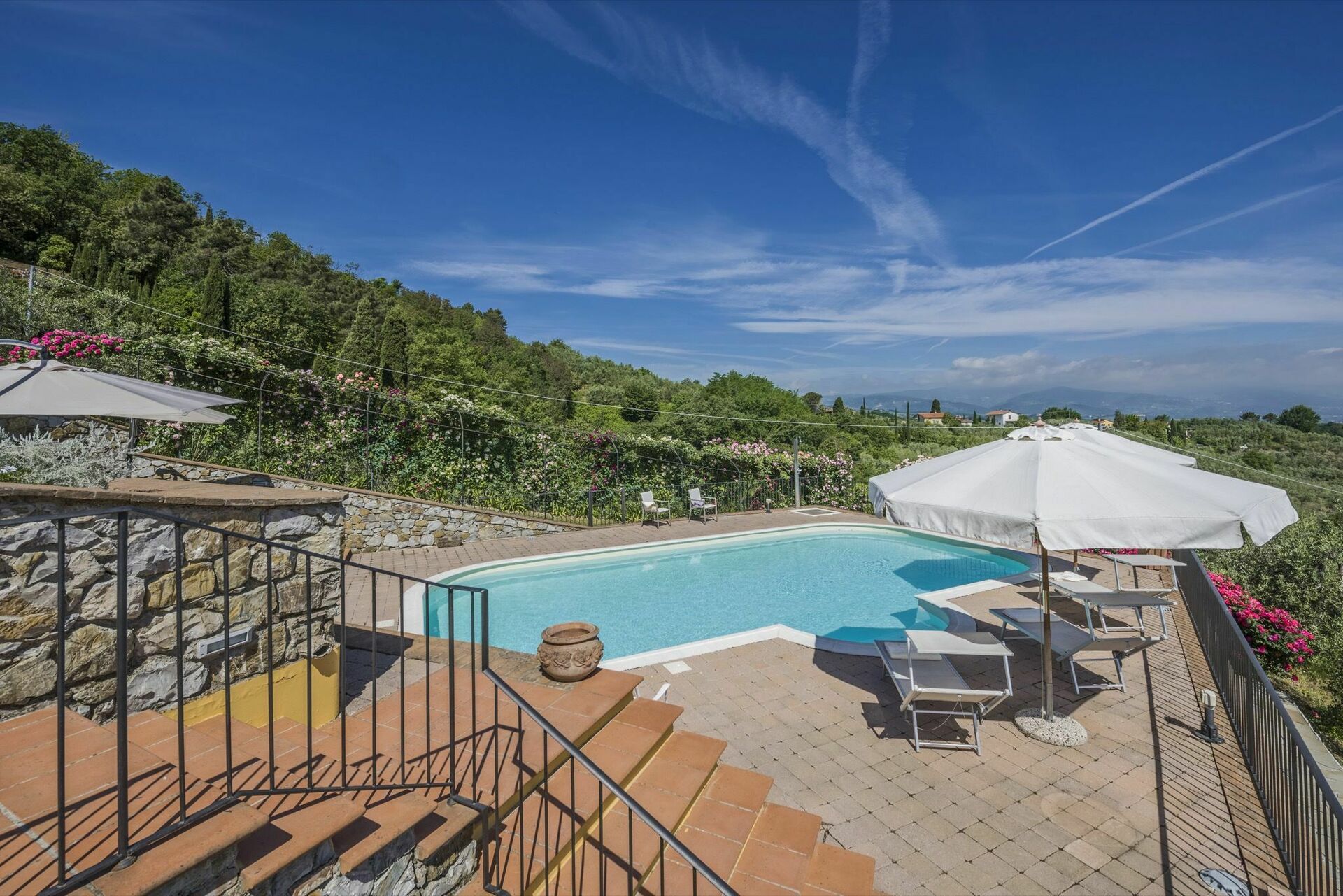 Dette smukke private sommerhus har en privat pool og ligger på en bakke med naturskønne omgivelser og med udsigt over en dal nær Pistoia i Toscana. Huset har er udstyret med alle moderne faciliteter og er både komfortabelt og smagfuldt indrettet. Villaen er omgivet af 10 hektar jord, hvoraf en stor del er dækket med 1500 oliventræer. Gæsterne kan gøre brug af en smuk, velholdt have, hvor du også finder den private pool med panoramaudsigt.