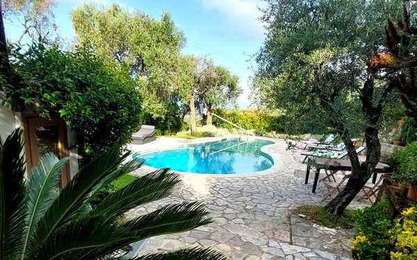 [English translation] very nice situated villa on hill with olive grove and fantastic views. Lovely pool and beautiful garden.