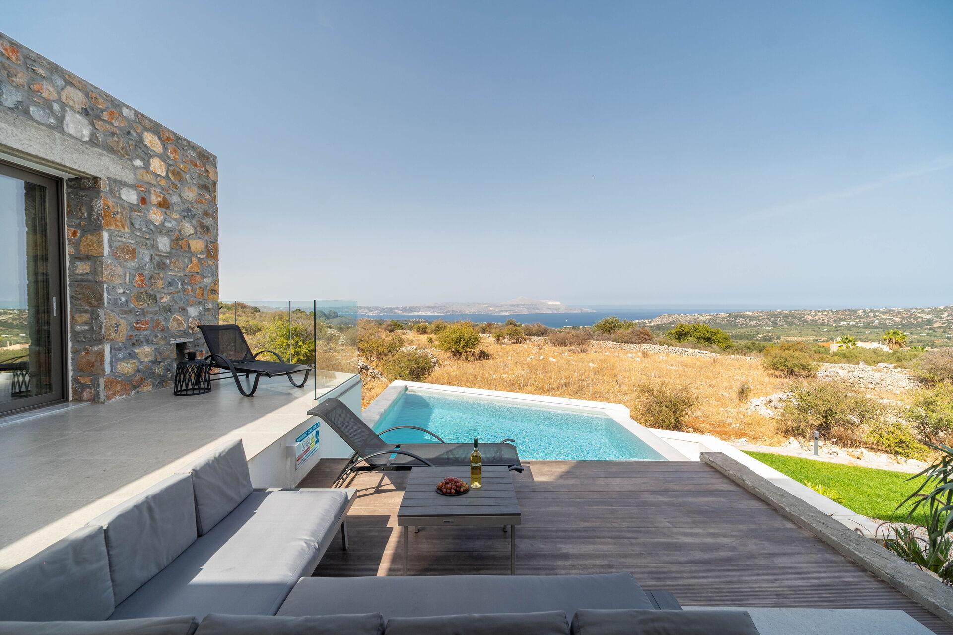 Villa con piscina privata e vasca idromassaggio esterna situata a 6 km dal mare a Creta, in Grecia.