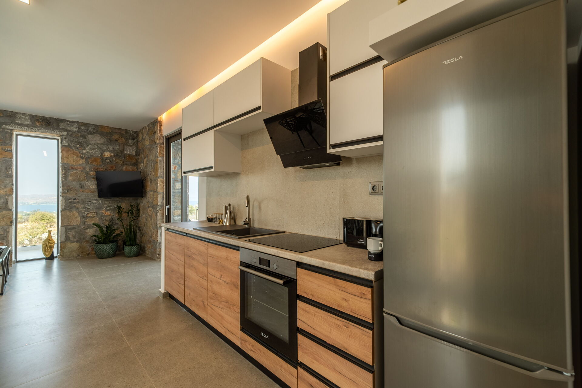 All'esterno ci sono una panoramica piscina privata, una vasca idromassaggio e una bella zona attrezzata per mangiare all’aria aperta. Interni confortevoli ed in stile moderno.